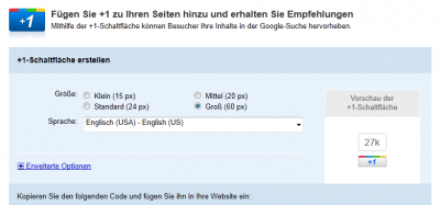 1<g:plusone size="small" count="false"></g:plusone>Natürlich stellt auch Google ein Tool dafür zur Verfügung, und zwar hier.
