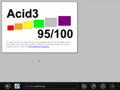 Auch den Acid3-Test musste ich dem Browser zumuten, dabei schneidet er (für einen Internet Explorer) ziemlich gut ab und erreichte in meinem Test 95 von 100 möglichen Punkten.