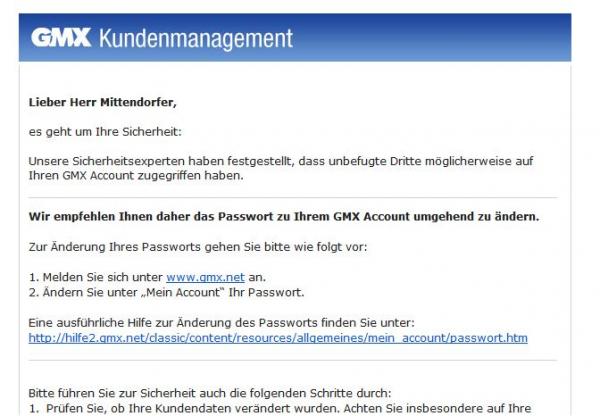 Heute habe ich eine Email von GMX erhalten, die augenscheinlich an alle Benutzer des Dienstes ging: