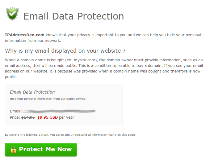 Diese Ach-so-tolle-Website erlaubt es für nur 9,95 USD meine Email-Adresse nicht mehr bei Ihnen anzuzeigen! Das ist schon ein gutes tolles Angebot!