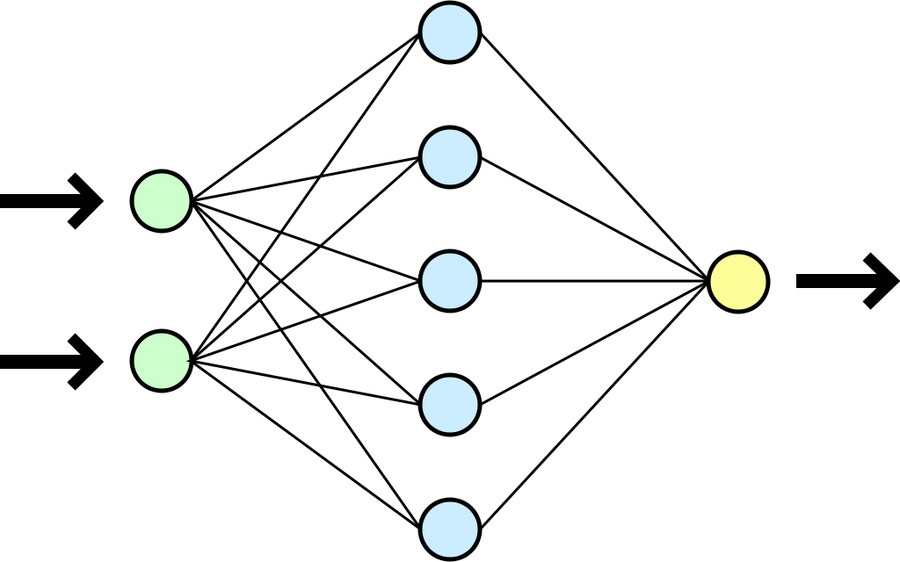 Dabei werden Neuroen verwendet, also Nervenzellen, wie sie auch bei uns im Gehirn vorkommen. Diese werden eingeteilt in eine Eingabeschicht, eine Ausgabeschicht und verdeckte Schichten (engl. hidden layers) dazwischen.